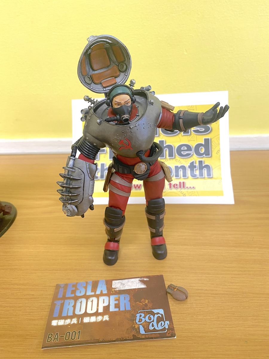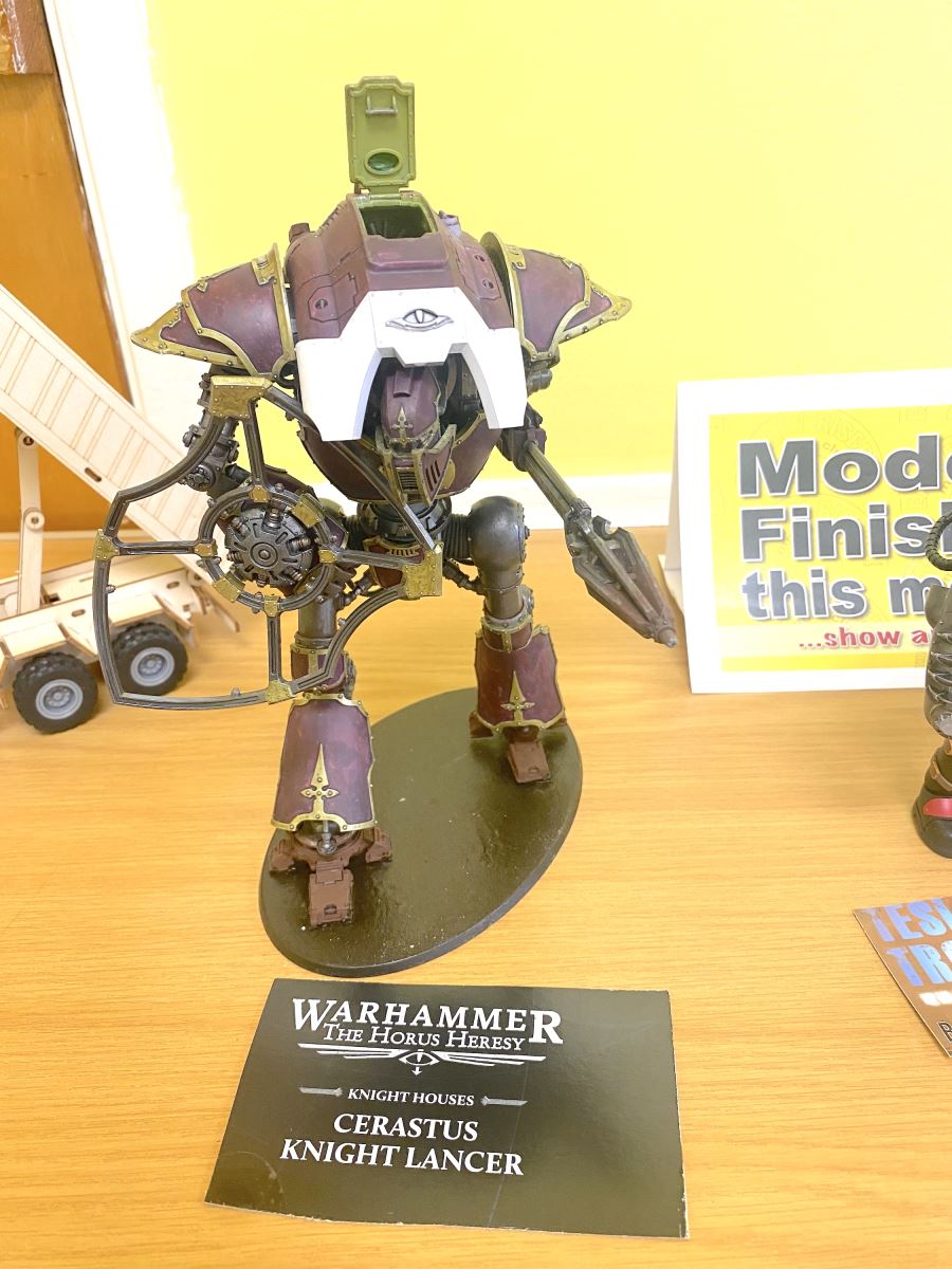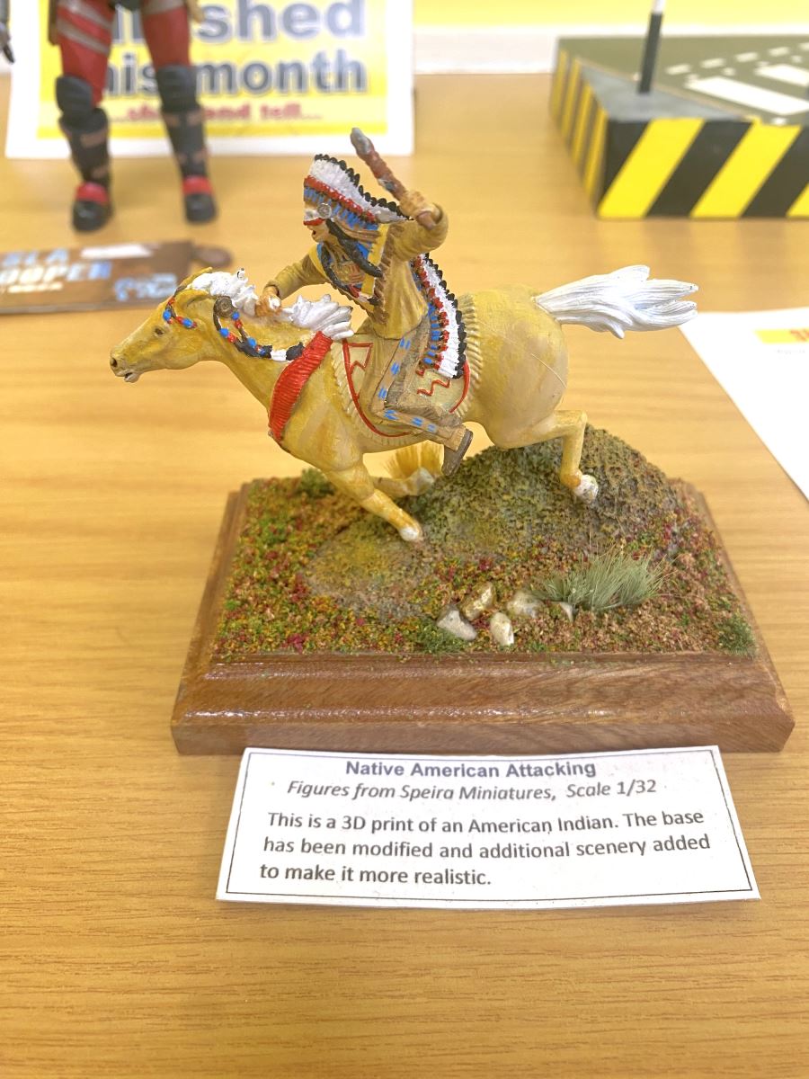 Seven models this month: Dave W's Matilda Bulldozer and M4A2 Sherman, Hugh's Zebras Crossing, Roger's American Indian and Felix's Snowspeeder. While Steve A brought along his Cerastus XL and Tesla Trooper figures along with a wooden tipper truck.